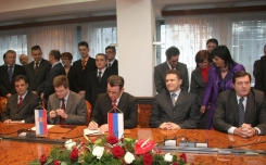Serbian Prime Minister Vojislav Kostunica, Republika Srpska Prime Minister Milorad Dodik and members of the two governments also attended the signing of the agreement.