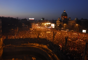 He pledged at the mass protest that he will not rest until Kosovo returns under the sovereign control of Serbia, and added that this is the largest protest which Serbia has ever seen.