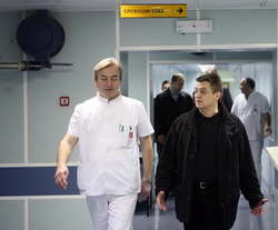 Tomica Milosavljevic, right, visits the injured in VMA