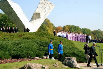 Afterwards, Serbian President Boris Tadic, Serbian parliament speaker Slavica Djukic-Dejanovic, Minister of Education Zarko Obradovic, Kragujevac Mayor Veroljub Stevanovic, Prince Aleksandar Karadjordjevic and students from the Krajuvac grammar school laid down wreaths.