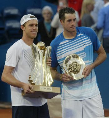 Third-seeded Sam Querrey rallied from a set down to beat fellow American John Isner 3-6, 7-6, 6-4 in Sunday's final at the Serbia Open.